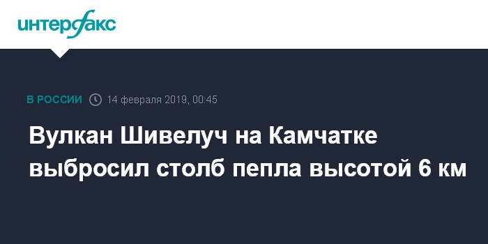 Москва. 14 февраля. INTERFAX.RU - Вулкан Шивелуч, извергающийся на Камчатке, выбросил столб пепла на высоту 6 км над уровнем моря, сообщил агентству "Интерфакс" в четверг представитель Камчатского филиала Геофизической службы РАН.