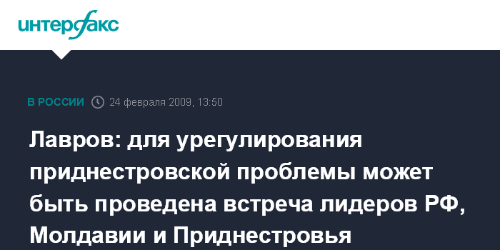 Москва. 24 февраля. INTERFAX.RU - В Москве считают, что для поиска перспектив урегулирования приднестровской проблемы может потребоваться встреча лидеров России, Молдавии и Приднестровья Дмитрия Медведева, Владимира Воронина и Игоря Смирнова, заявил глава МИД РФ Сергей Лавров.