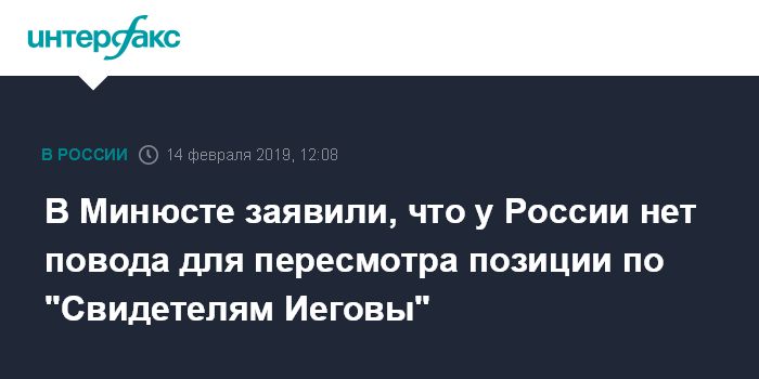 В Минюсте заявили, что у России нет повода для пересмотра позиции по "Свидетелям Иеговы"