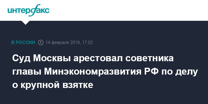 Суд Москвы арестовал советника главы Минэкономразвития РФ по делу о крупной взятке