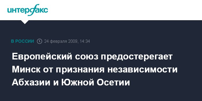 Брюссель. 24 февраля. INTERFAX.RU - Европейский союз предостерегает Минск от признания независимости Абхазии и Южной Осетии.