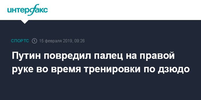 Москва. 15 февраля. INTERFAX.RU - Президент России Владимир Путин на тренировке с дзюдоистами в Сочи повредил палец на правой руке.