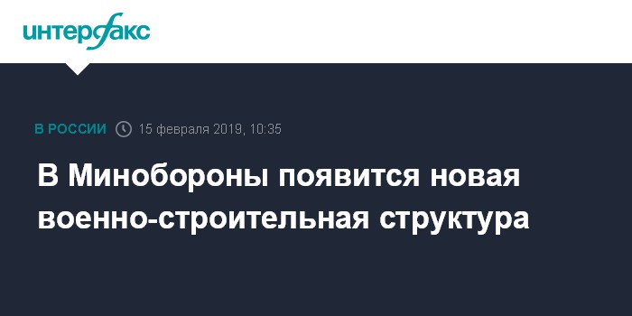 Москва. 15 февраля. INTERFAX.RU - В Минобороны РФ вместо ликвидированного в 2017 году Спецстроя появится публично-правовая компания (ППК) под условным названием "Военно-строительный комплекс". Об этом сообщает в пятницу "Коммерсантъ" со ссылкой на источники в военном ведомстве и строительстве.