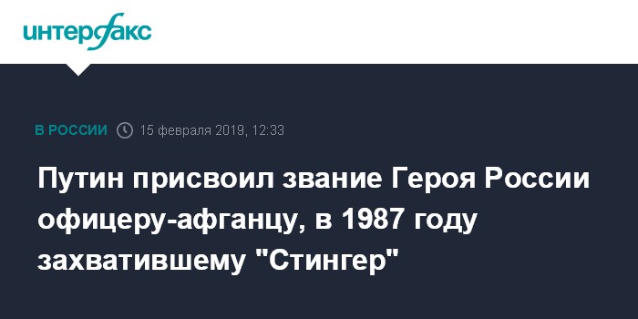 Путин присвоил звание Героя России офицеру-афганцу, в 1987 году захватившему "Стингер"