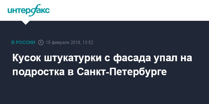 Москва. 15 февраля. INTERFAX.RU - Полиция Петербурга проводит проверку после падения на голову 16-летнему местному жителю куска штукатурки с фасада здания НИИ уха, горла, носа и речи (НИИ ЛОР) в Адмиралтейском районе города, сообщает пресс-служба регионального ГУ МВД в пятницу.