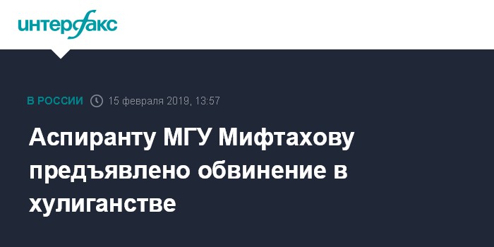 Аспиранту МГУ Мифтахову предъявлено обвинение в хулиганстве