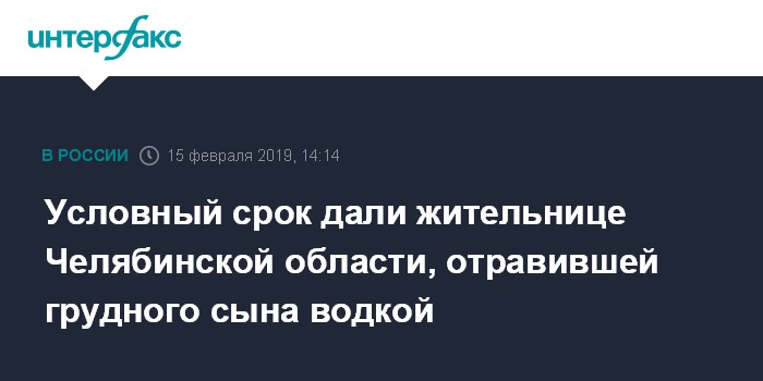 Москва. 15 февраля. INTERFAX.RU - Челябинский областной суд вынес приговор 40-летней местной жительнице, насмерть отравившей грудного ребенка водкой, сообщает пресс-служба регионального следственного управления СКР.