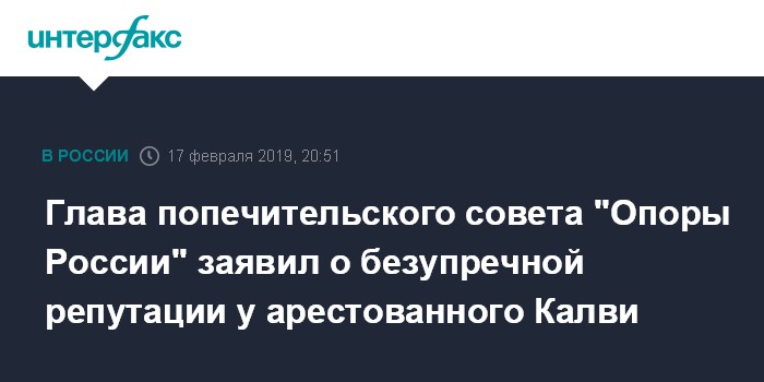 Глава попечительского совета "Опоры России" заявил о безупречной репутации у арестованного Калви