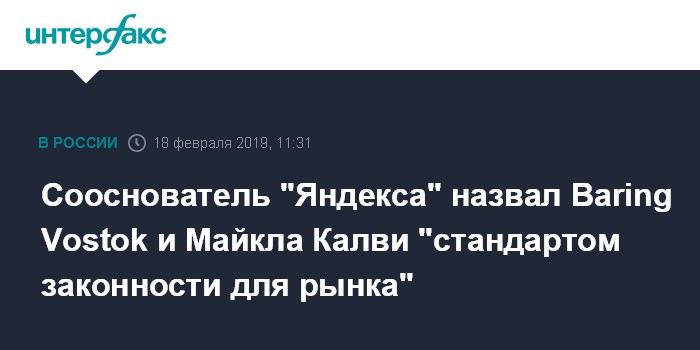 Сооснователь "Яндекса" назвал Baring Vostok и Майкла Калви "стандартом законности для рынка"