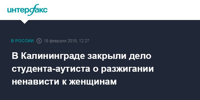 В Калининграде закрыли дело студента-аутиста о разжигании ненависти к женщинам