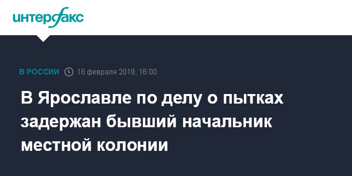 "Сотрудники Следственного комитета задержали в Ярославле бывшего начальника колонии №1 Дмитрия Николаева. Задержание связано с расследованием уголовных дел о пытках заключенных. Потерпевшими признаны несколько бывших и нынешних заключенных ярославских колоний, которых защищает "Общественный вердикт", - говорится в сообщении фонда, распространенном в понедельник.