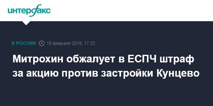 Митрохин обжалует в ЕСПЧ штраф за акцию против застройки Кунцево