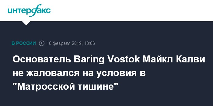 Основатель Baring Vostok Майкл Калви не жаловался на условия в "Матросской тишине"