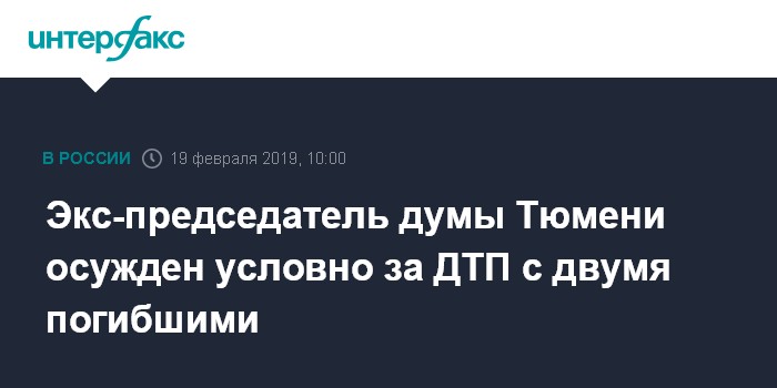 Москва. 19 февраля. INTERFAX.RU - Тюменский районный суд приговорил к трем годам условно бывшего спикера городской думы Тюмени Дмитрия Еремеева, который летом 2018 года стал участником дорожной аварии с двумя жертвами.
