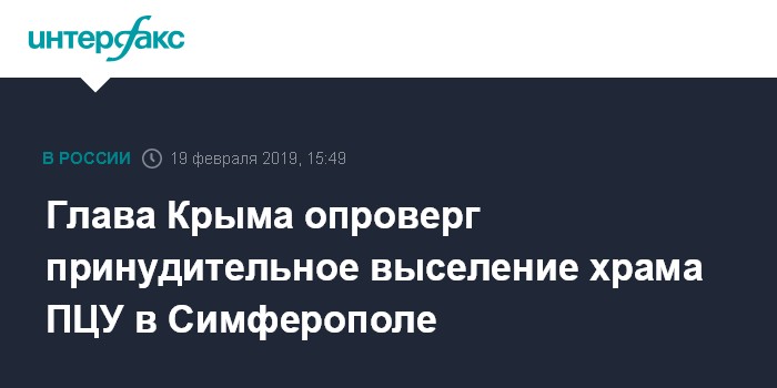 Москва. 19 февраля. INTERFAX.RU - Силовой способ освобождения в Симферополе помещения, которое находилось в аренде Крымской епархии новой церкви Украины (ПЦУ), исключен, сообщил глава республики Сергей Аксенов.