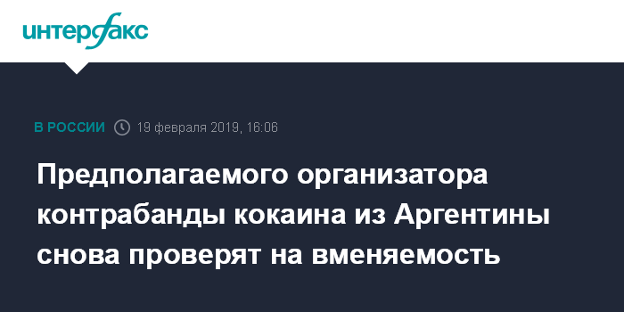 Предполагаемого организатора контрабанды кокаина из Аргентины снова проверят на вменяемость