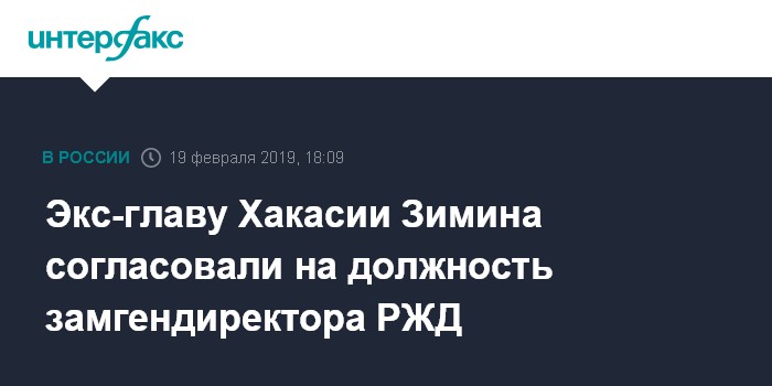 Экс-главу Хакасии Зимина согласовали на должность замгендиректора РЖД