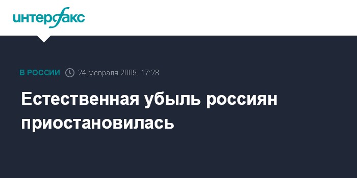 Москва. 24 февраля. INTERFAX.RU - По предварительным данным Минздравсоцразвития РФ, темпы сокращения численности населения России в 2008 г. снизились почти на четверть.