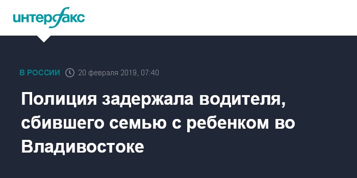 Москва. 20 февраля. INTERFAX.RU - Во Владивостоке сотрудники полиции задержали подозреваемого в совершении наезда на пешеходов - семью из трех человек, в результате чего женщина и ребенок скончались.