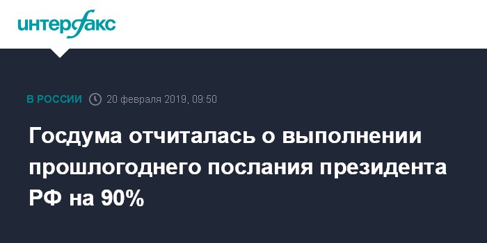 Госдума отчиталась о выполнении прошлогоднего послания президента РФ на 90%