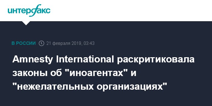 Amnesty International раскритиковала законы об "иноагентах" и "нежелательных организациях"