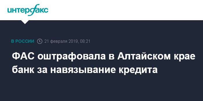 ФАС оштрафовала в Алтайском крае банк за навязывание кредита