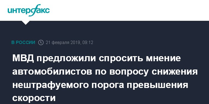В декабре 2018 года правительственная комиссия поручила МВД (ГИБДД) и Минтрансу до 1 марта 2019 года представить предложения по изменению Кодекса об административных правонарушениях в части введения штрафа за превышение скорости на 10-20 км/ч. Сейчас превышение разрешенной скорости в пределах 20 км/ч штрафами не облагается.