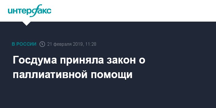 Москва. 21 февраля. INTERFAX.RU - Госдума приняла в третьем чтении закон о паллиативной помощи.