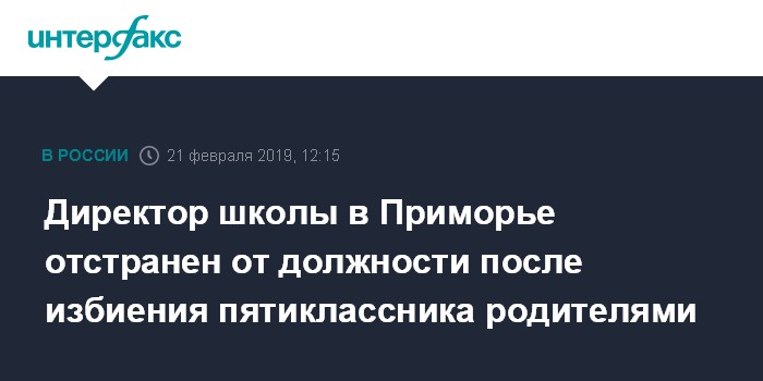 Москва. 21 февраля. INTERFAX.RU - Директор школы в городе Большой Камень в Приморье, где родители побили пятиклассника-хулигана, временно отстранен от должности.