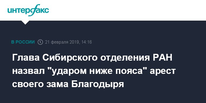 Глава Сибирского отделения РАН назвал "ударом ниже пояса" арест своего зама Благодыря