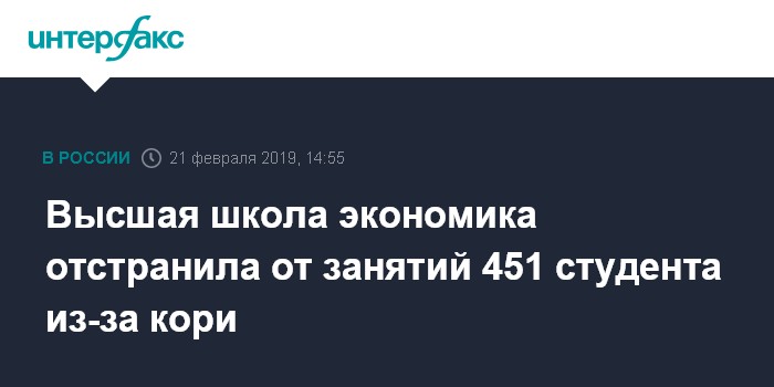 Москва. 21 февраля. INTERFAX.RU - Высшая школа экономики (НИУ ВШЭ) отстранила от занятий 451 студента, чтобы предотвратить распространение кори, сообщает пресс-служба ВШЭ.