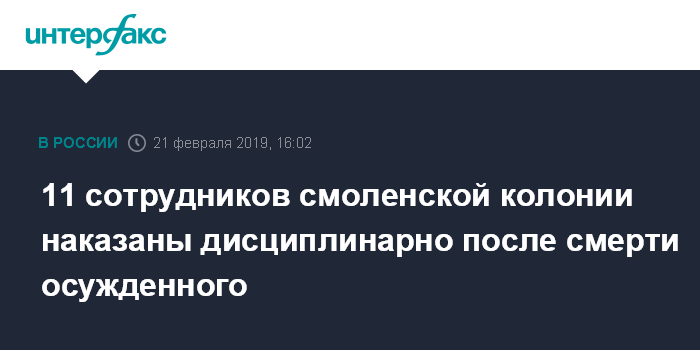 11 сотрудников смоленской колонии наказаны дисциплинарно после смерти осужденного