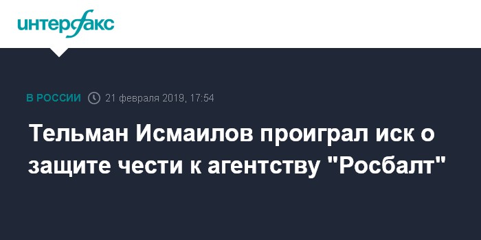 Тельман Исмаилов проиграл иск о защите чести к агентству "Росбалт"
