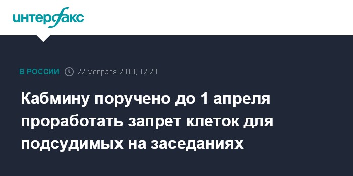 Москва. 22 февраля. INTERFAX.RU - Премьер РФ Дмитрий Медведев поручил министерству юстиции, МВД и Минфину до середины весны еще раз проработать вопрос об исключении в залах судов стеклянных кабин и клеток для подсудимых.