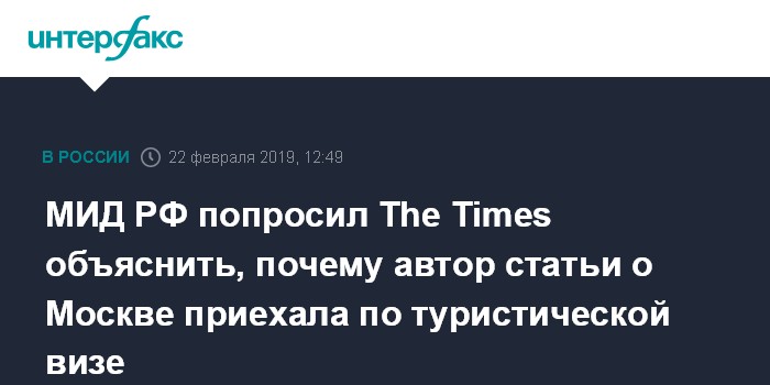 "Возникает резонный вопрос: если г-жа Тернер находилась в Москве как туристка, то почему газета The Times публикует этот материал как статью своей корреспондентки? Если же Тернер посещала Москву по редакционному заданию, то почему ей не оформили журналистскую визу, как и полагается в подобных случаях?" - добавили в МИД РФ.