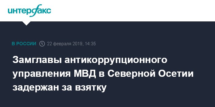 Замглавы антикоррупционного управления МВД в Северной Осетии задержан за взятку