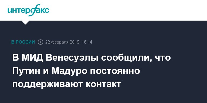Москва. 22 февраля. INTERFAX.RU - Лидеры России и Венесуэлы Владимир Путин и Николас Мадуро находятся в постоянном телефонном контакте, заявил замглавы МИД Венесуэлы Иван Хиль.