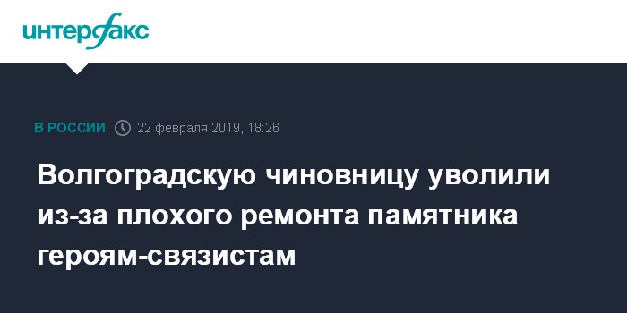 Волгоградскую чиновницу уволили из-за плохого ремонта памятника героям-связистам