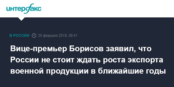 Вице-премьер Борисов заявил, что России не стоит ждать роста экспорта военной продукции в ближайшие годы