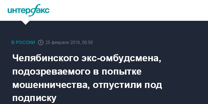 Челябинского экс-омбудсмена, подозреваемого в попытке мошенничества, отпустили под подписку