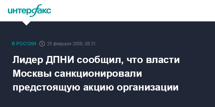 Лидер ДПНИ сообщил, что власти Москвы санкционировали предстоящую акцию организации