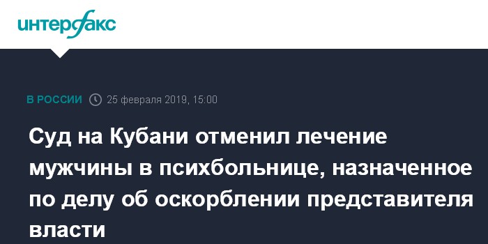 Суд на Кубани отменил лечение мужчины в психбольнице, назначенное по делу об оскорблении представителя власти