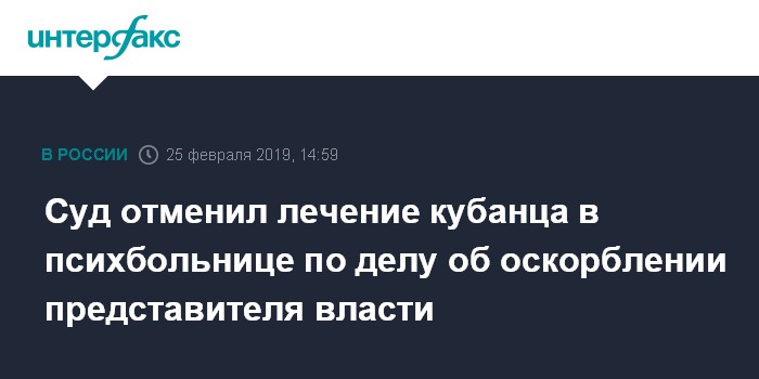 Суд отменил лечение кубанца в психбольнице по делу об оскорблении представителя власти