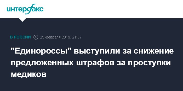 В целом "единороссы" считают заслуживающей внимания эту законодательную инициативу, но считают, что предлагаемые министерством суммы штрафов "слишком велики и несоразмерны с деянием медицинских работников".