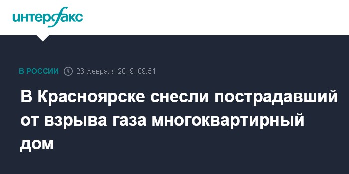 Москва. 26 февраля. INTERFAX.RU - В Красноярске снесли незаконно построенный многоквартирный трехэтажный дом, который был частично разрушен взрывом бытового газа 14 февраля, сообщили агентству "Интерфакс" в мэрии.