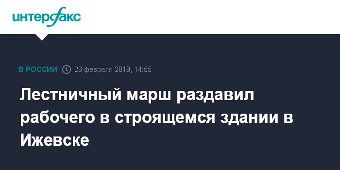 Москва. 26 февраля. INTERFAX.RU - Следователи управления СКР по Удмуртии начали проверку по факту гибели 32-летнего рабочего в строящемся здании на центральной улице Ижевска во вторник, сообщает пресс-служба управления.