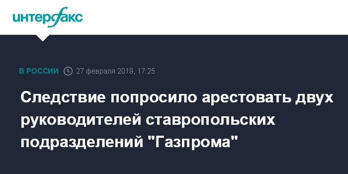 Москва. 27 февраля. INTERFAX.RU - Следствие по делу о многомиллиардных хищениях у "Газпрома" настаивает на аресте двух задержанных накануне руководителей ставропольских филиалов компании, сообщила официальный представитель Следственного комитета (СК) Светлана Петренко.