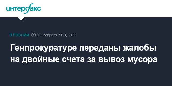 "Поступило уже более 100 сообщений от граждан с жалобами на то, что управляющие компании выставляют двойной счет за вывоз мусора - они получают квитанции за услуги ЖКХ и от регионального оператора за обращение с ТКО, и от управляющей компании. Мы подготовили и передали пакет документов на имя генерального прокурора Юрия Чайки с просьбой организовать проверки в субъектах РФ", - сказал журналистам в четверг Бурматов.