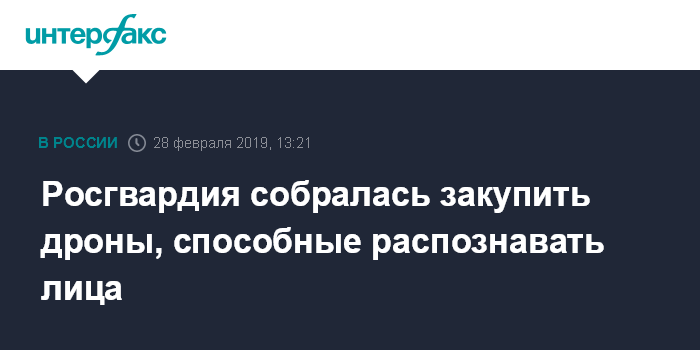 Москва. 28 февраля. INTERFAX.RU - Росгвардия заинтересована в закупке усовершенствованных беспилотных летательных аппаратов, способных распознавать лица граждан и автомобильные номера, сообщил начальник профильного главка ведомства Александр Афиногентов.
