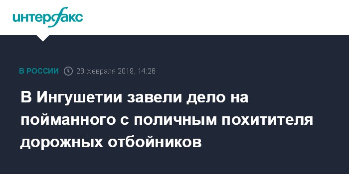Москва. 28 февраля. INTERFAX.RU - Полиция возбудила уголовное дело в отношении ранее дважды судимого жителя Ингушетии, пойманного с поличным при хищении колесоотбойников, сообщили в четверг агентству "Интерфакс"в пресс-службе республиканского МВД.